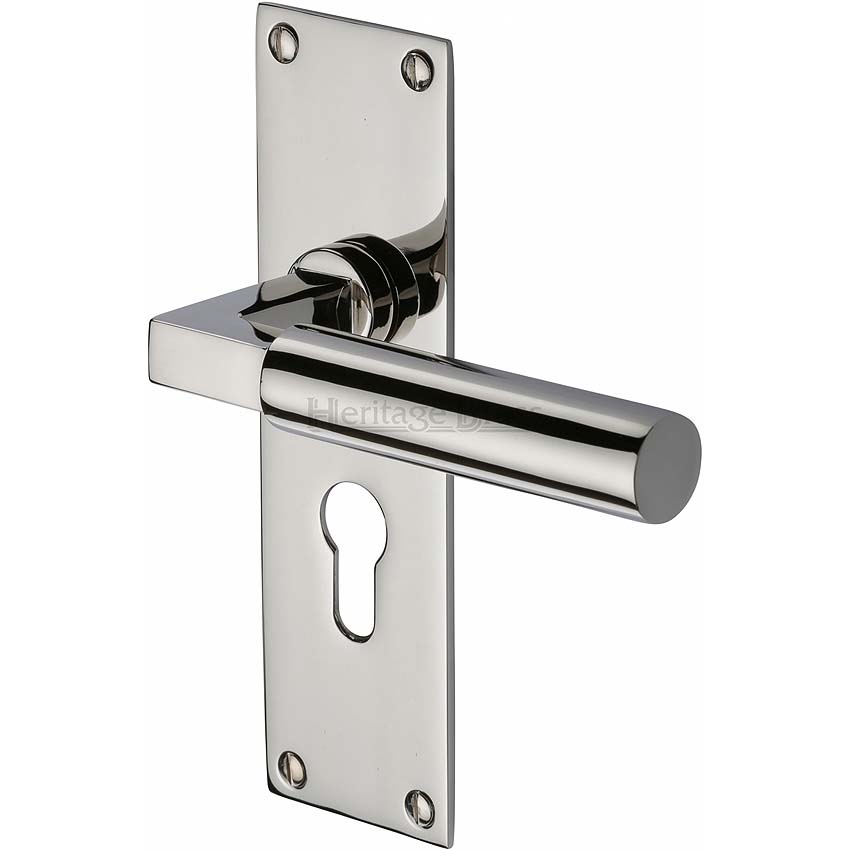 Bauhaus Low Profile Euro Cylinder Lock Handle Polished Nickel
