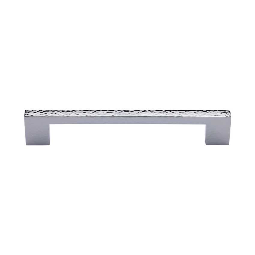 Heritage Brass cabinet pull Metro hammered design in a polished chrome finish.